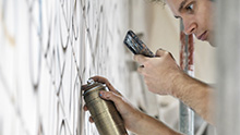 De afgelopen drie weken heeft Stanley dagelijks ongeveer 8 à 9 uur met de spuitbus gewerkt. Op de foto’s is het proces vastgelegd. Allereerst wordt er op de wand een ‘grid’ van cijfers en letters gespoten. Daar wordt een foto van gemaakt. Die foto wordt over de foto van het ontwerp gelegd. Dat helpt de kunstenaar om alles in het juiste perspectief te plaatsen. Eerst wordt de achtergrond aangebracht, daarna de details. Met verschillende spuitmonden kan hij tot op 2 mm nauwkeurig spuiten. Het betreft een enorme afbeelding van circa 60 m², waarbij hij vaak van dichtbij werkt; regelmatig afstand nemen om het geheel te overzien is daarom noodzakelijk.