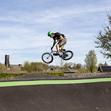 Een crossbaan van asfalt met bulten en kombochten, die elkaar ritmisch opvolgen. Je kunt daardoor in een vloeiende lijn over de hele baan gaan. Door de harde geasfalteerde toplaag is de pumptrack niet alleen geschikt voor crossfietsen, mountainbikes maar ook voor stuntstepjes, loopfietsjes, inline skates en skateboards. Dus eigenlijk voor alle fiets- en rollersporten voor jong en oud. Je begrijpt het pas echt als je het gezien hebt dus kom vooral naar het Kuilveld.